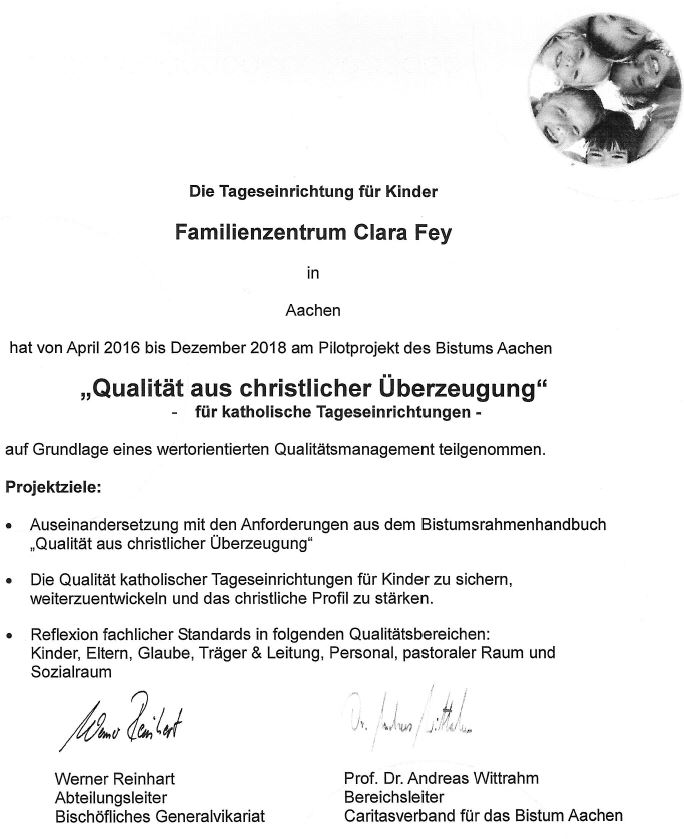 Die inklusive Kindertagesstätte Clara Fey ist eine in Aachen –Burtscheid liegende katholische Einrichtung der Caritas Lebenswelten GmbH.